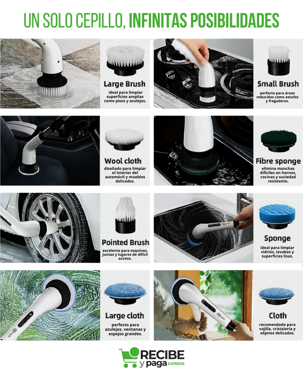 ✔ Super prático e fácil de usar; ✔ Indicado para todos os lugares e tipos de acomodação; ✔ Coloque 3 tamaños ajustáveis; ✔ Rotação de 360° para uma limpeza eficiente; ✔ Inclui +8 cabezales de fregona GRATUITOS; ✔ Bateria recarregável e de longa duração; ✔Grande potência; ✔ Manga larga para alcanzar vários lugares; ✔ Limpa todo tipo de material; ✔ Super resistente e durável; ✔ Desmontável.